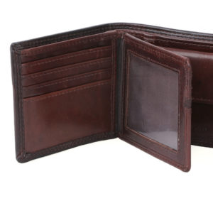 Tab wallets are particularly suited to designs using an internal swing divider for extra card storage. This design, finished in Polo’s Kenya leather with trims, is a classic tab option.